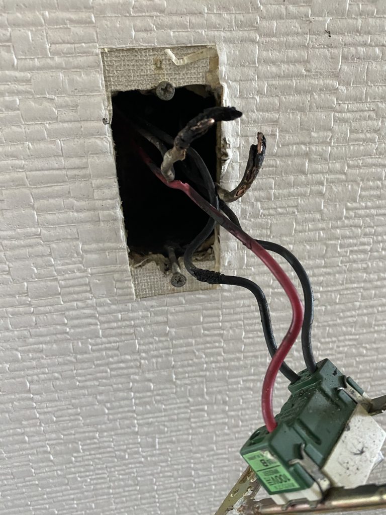 中部電力がある程度調べてくれてこの部屋が怪しいとの事で、焦げ臭いスイッチをばらしてみたら…