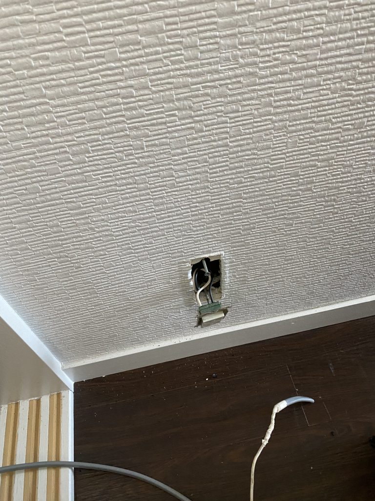 埋め込みローゼットが直付けしてありアウトレットボックスが見当たらない。