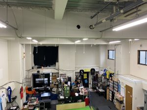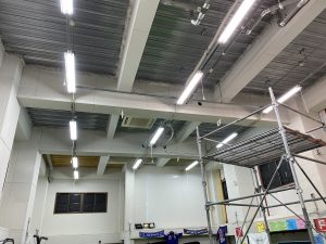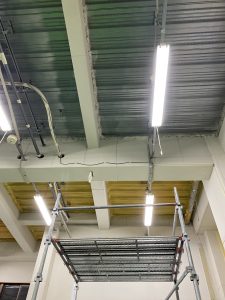 高所の為お客手配のローリングタワーを使っての作業になります。